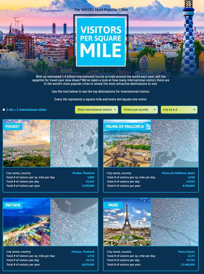 Our new study reveals the most popular cities in the world - two of which are in Thailand. The other three are in Europe. The study calculates the number of visitors a city receives per square mile; so expect crowds.